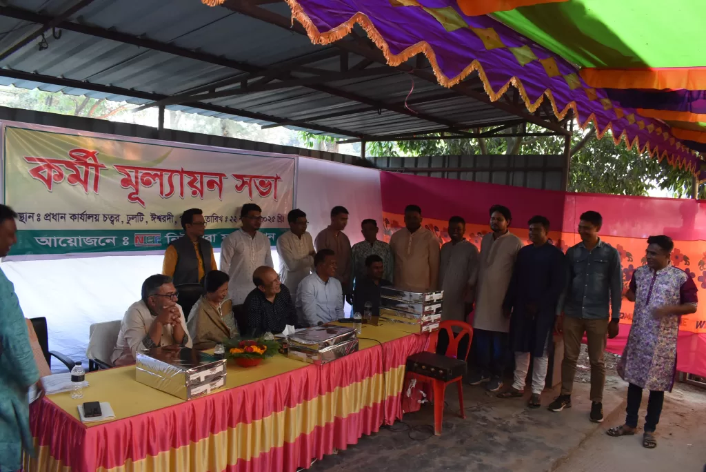 নিউ এরা ফাউন্ডেশনের কর্মীদের মনোবল উন্নয়ন ও কর্মদক্ষতা বৃদ্ধির লক্ষ্যে গত ২২ নভেম্বর, শনিবার বিকাল ৩টা’য় নিউ এরা ফাউন্ডেশনের প্রধান কার্য্যালয়ে সংস্থার কর্মী মূল্যায়ন সভা অনুষ্ঠিত হয়। কর্মীদের অনুপ্রেরণা যোগাতে এই অনুষ্ঠানে প্রতিষ্ঠানটির ১১ জন মাঠ কর্মকর্তা এবং ৪ জন শাখা ব্যবস্থাপককে তাদের কাজের মান মূল্যায়ন করে পুরস্কৃত করা হয়।